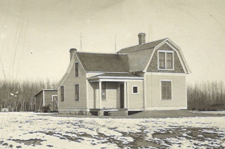 This picture gives us a good idea on what our home would have looked like, wood plan siding and shingles in the gable.