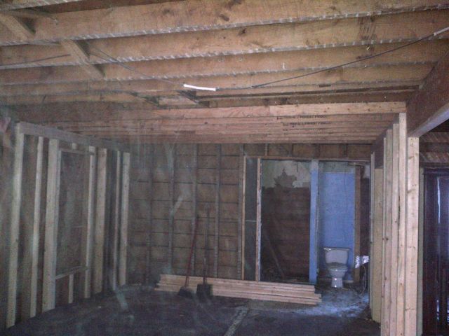 While Ian was gutting the bathroom, I worked on the guest room ceiling. Once I had removed the lath and plaster ceiling I came to the realization that we needed to prioritize the repair of the ceiling (== second floor flooring) structure. so that the second floor addition would be added to a sound and secure floor.