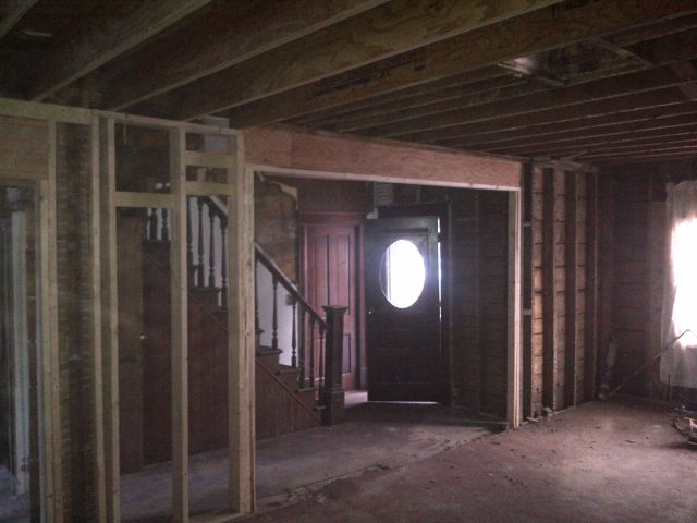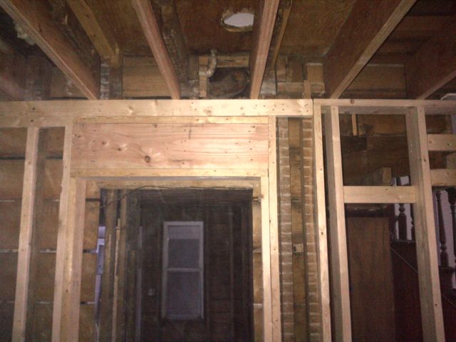 After a reassessment by the structural engineer and an update to the permit request, we had our contractor re-enforce the walls and put in laminated beams. At the end of January this step of the project was finished.