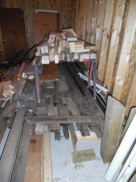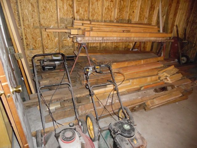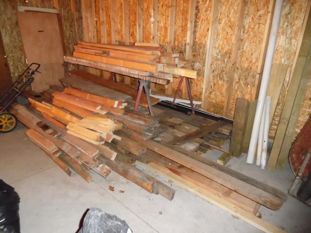 On Sunday the main accomplishment was that I got all of the wood from the front yard stacked up in the garage or, if the wood was too nail infested or simply too warped/cracked/rotted to keep, we put it in the trailer and we are going to bring it to the dump tomorrow (Monday)