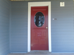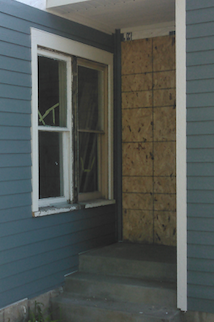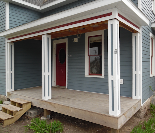 The West-side porch currently has no windows or doors, but progress is made on changing that.