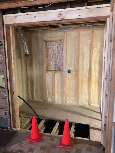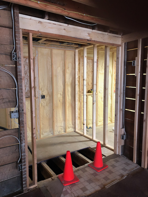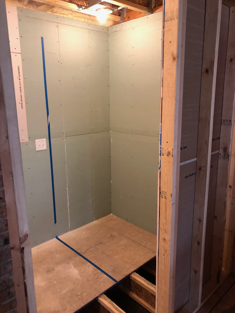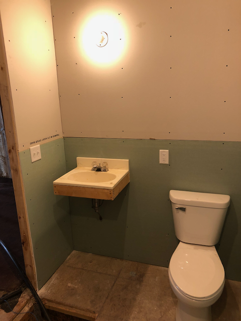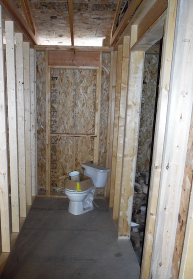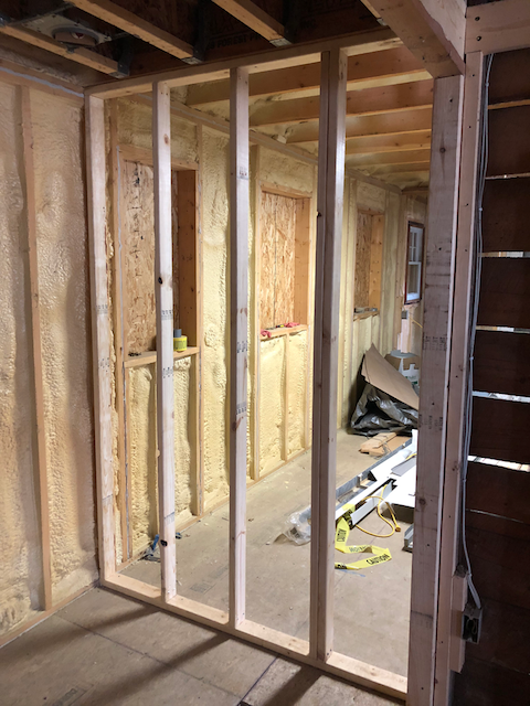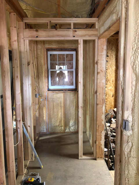 The guest bedroom and bathroom had some updates as well. The guest bedroom has a door and the bathroom has walls, and even has drywall (not yet taped) in anticipation of the plumbing installation. No before pictures, just a few in-progress ones.