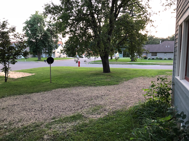 The water and sewer connections to the street had to be replaced, which forced the removal of the beautiful spruce tree on the west side of the house. This also took care of the stump that was left behind when the dead tree in front of the house was cut down, way in the beginning of this project.
