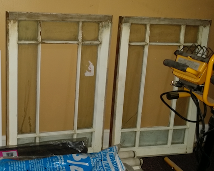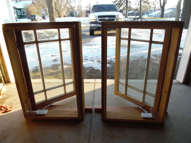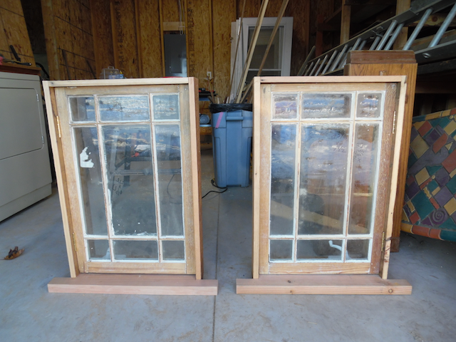 How they were bought. In rough shape, needing glass and glazing Regalzed and mounted in newly built frame And they can open