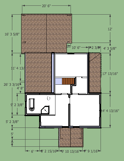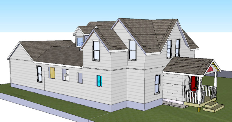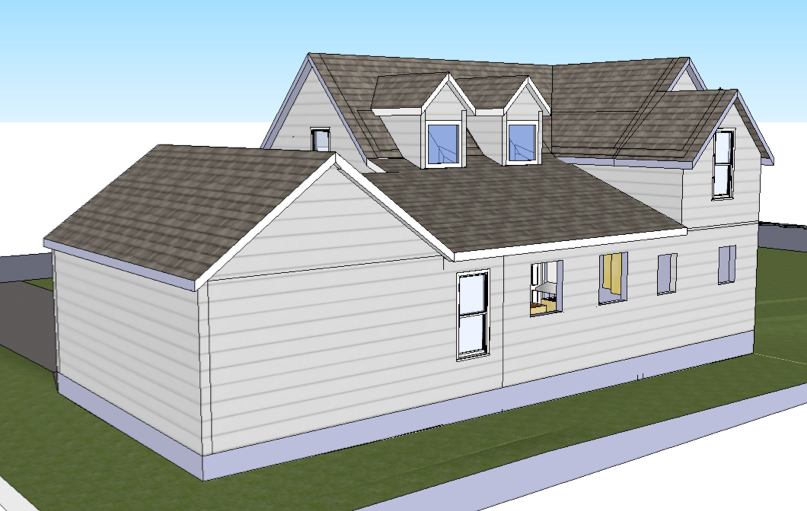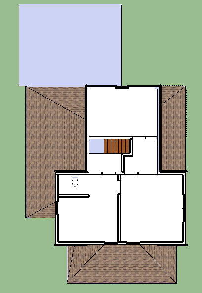 The roof of the west-side addition needs full replacement as it has partially caved in.Removing the old west-side addition and replace it with a distinct entrance.The lower roof above the kitchen is at the point of collapse and has to be rebuilt. The main-house roof aligns very poorly with the lower roof.Rebuild the roof and add a small section to the second floor. Also replace the poorly designed garage roof.Old first floor layout. the guest bedroom overlaps into the front porch.Planned first floor, guest room moves in, front porch is just a mudroom and living room gets more space.Second floor layout.Planned second floor layout with the small addition on the left.